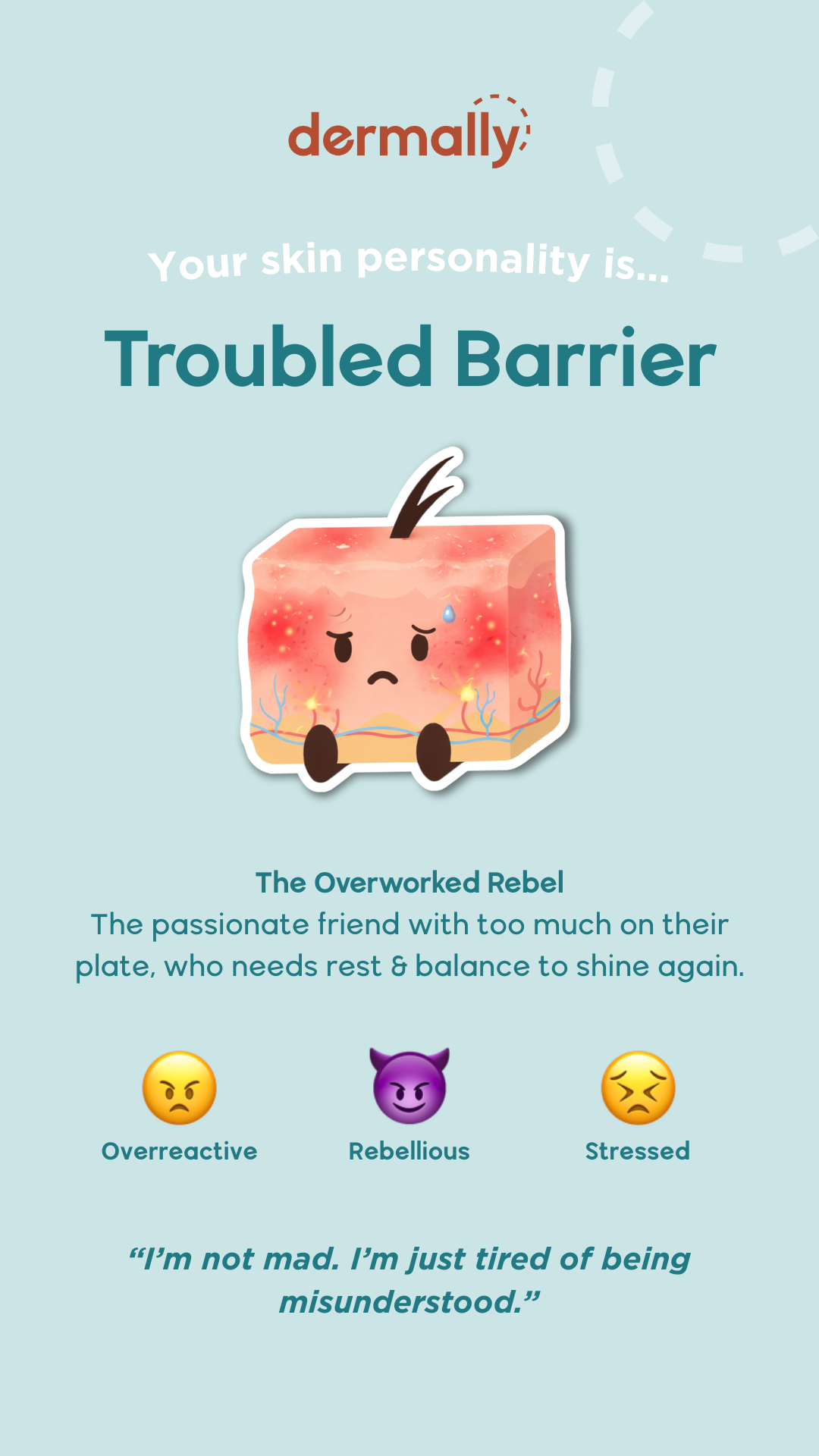 Reactive & outspoken - can’t hide frustration (acne breakouts).